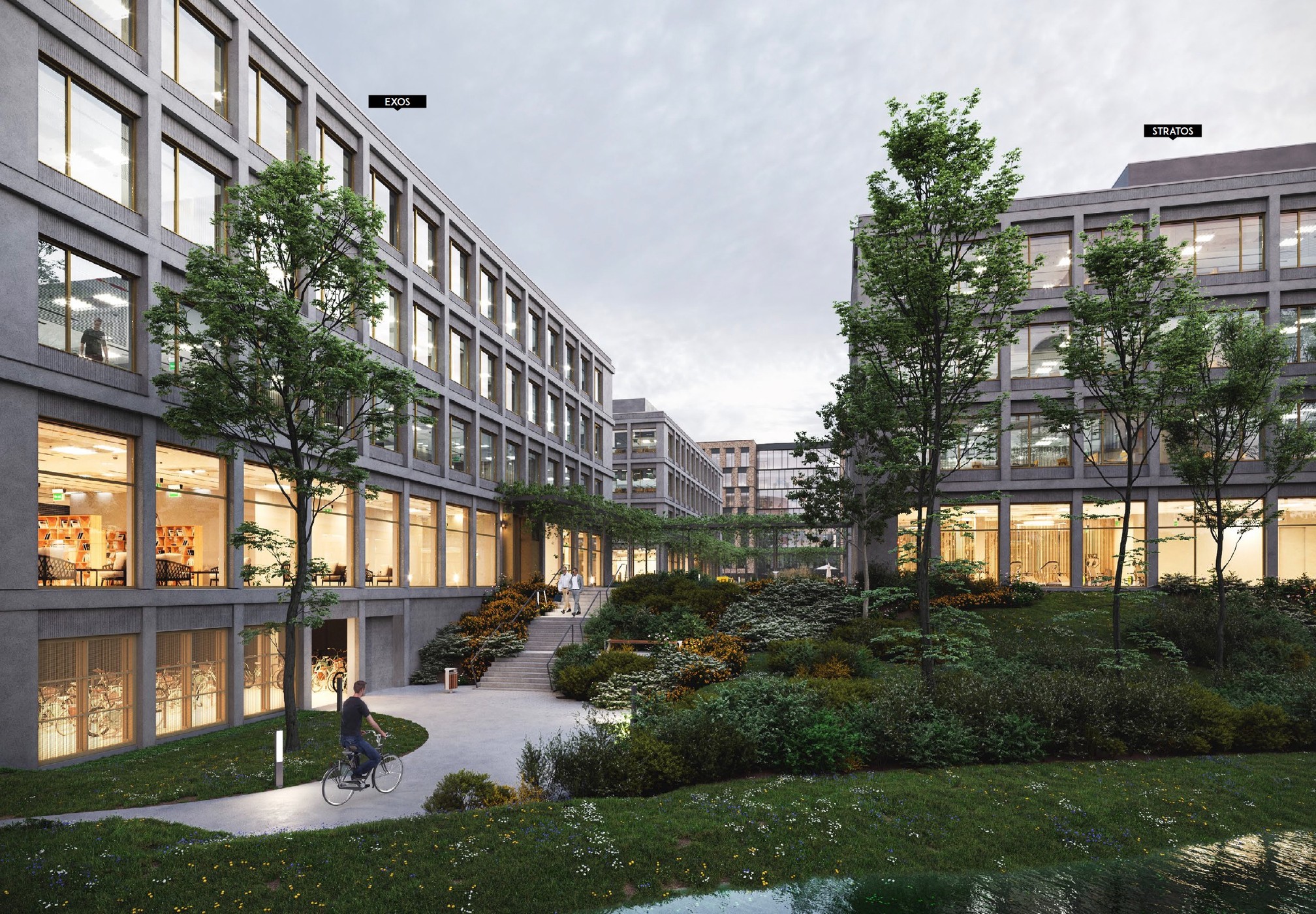 ATMOS biedt niet alleen een positieve klimaatimpact, maar is ook ontworpen om een ideale werkomgeving te zijn. Het project bestaat uit vijf autonome gebouwen gelegen rond een centraal plein met mooi uitzicht op nieuw aangelegd en bestaand weelderig groen en water.